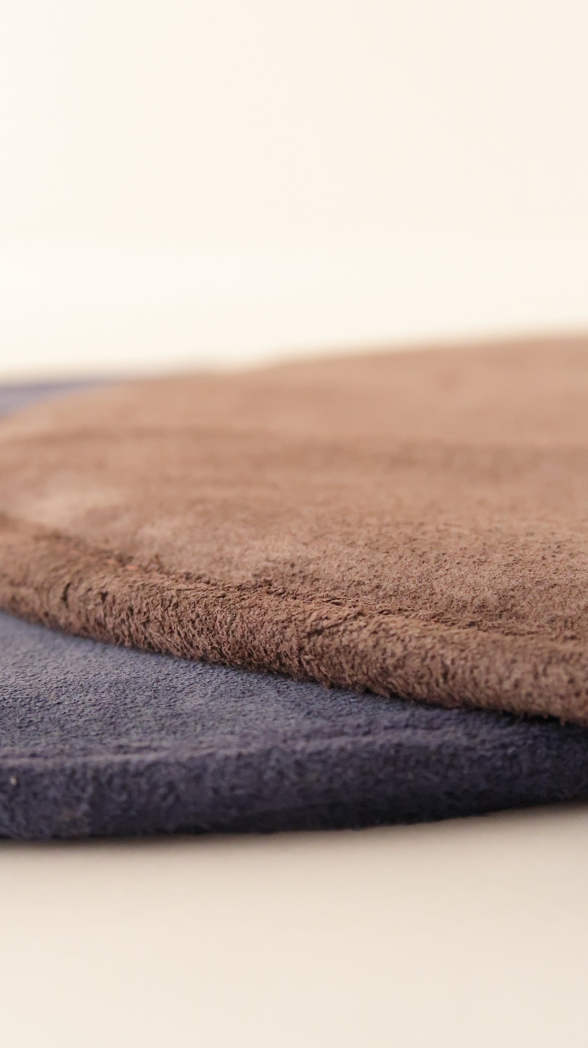色は2色ご用意しました。リバーシブルになっているので裏表の色の違いを楽しむことができます。間には薄くスポンジが挟まっているので、クッション性もあります。椅子やスツール、車の座席などに置き、気分により色を変えてお楽しみいただくのはいかがでしょうか。冬場は防寒対策にもなります。