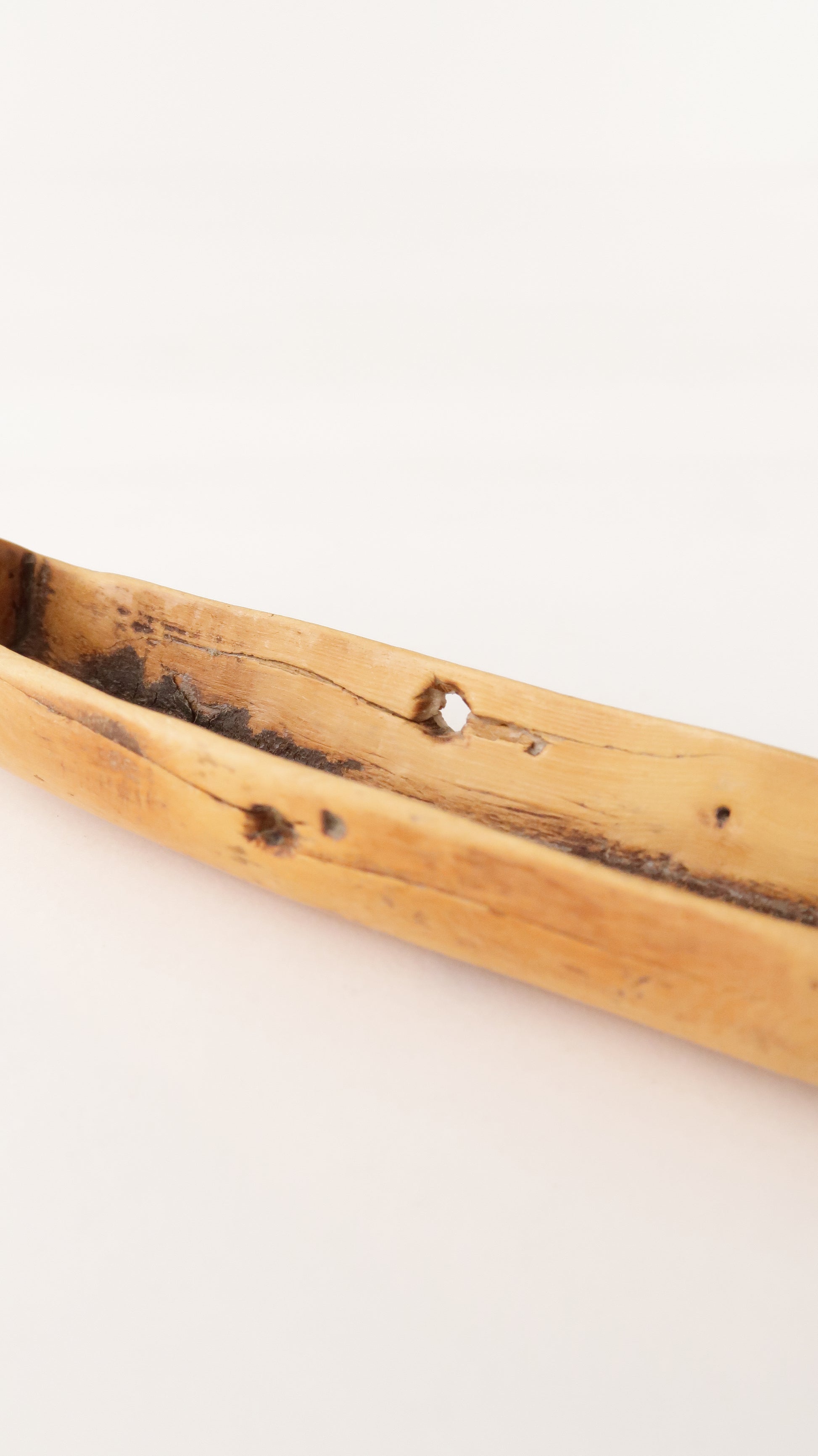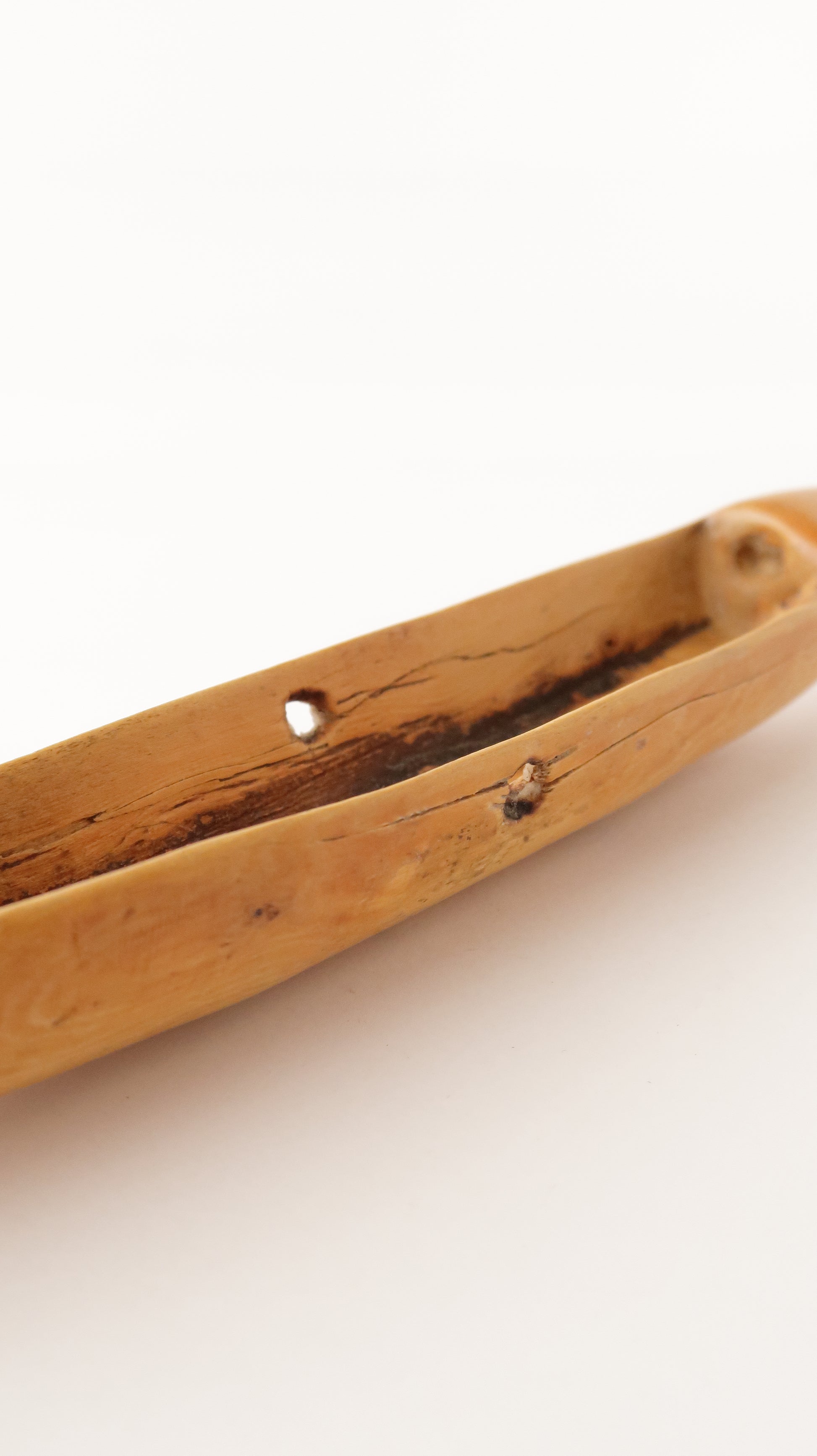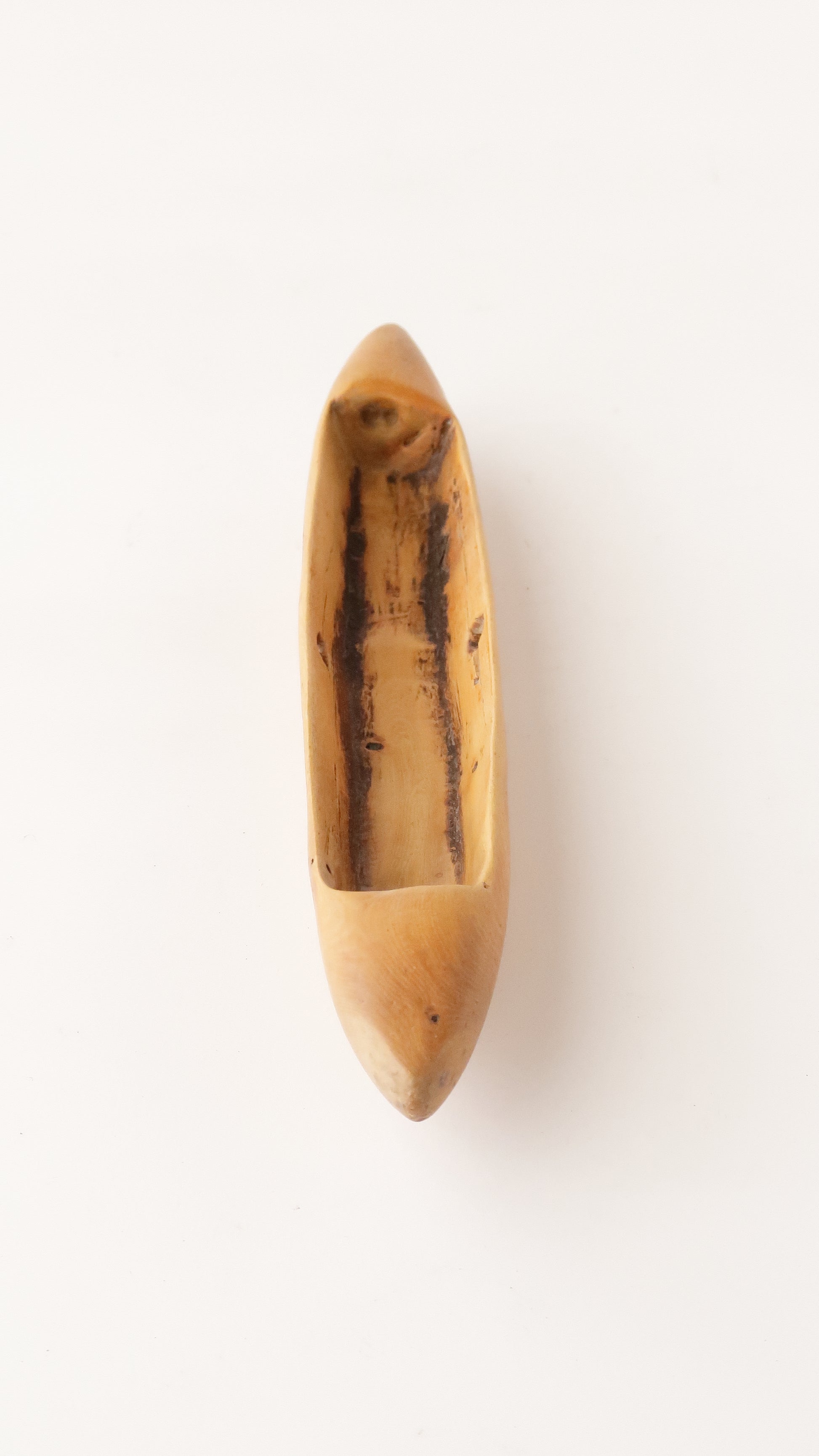 ここまで素朴なタイプは珍しく、手彫りの風合いと使い込まれた木の質感が魅力的です。