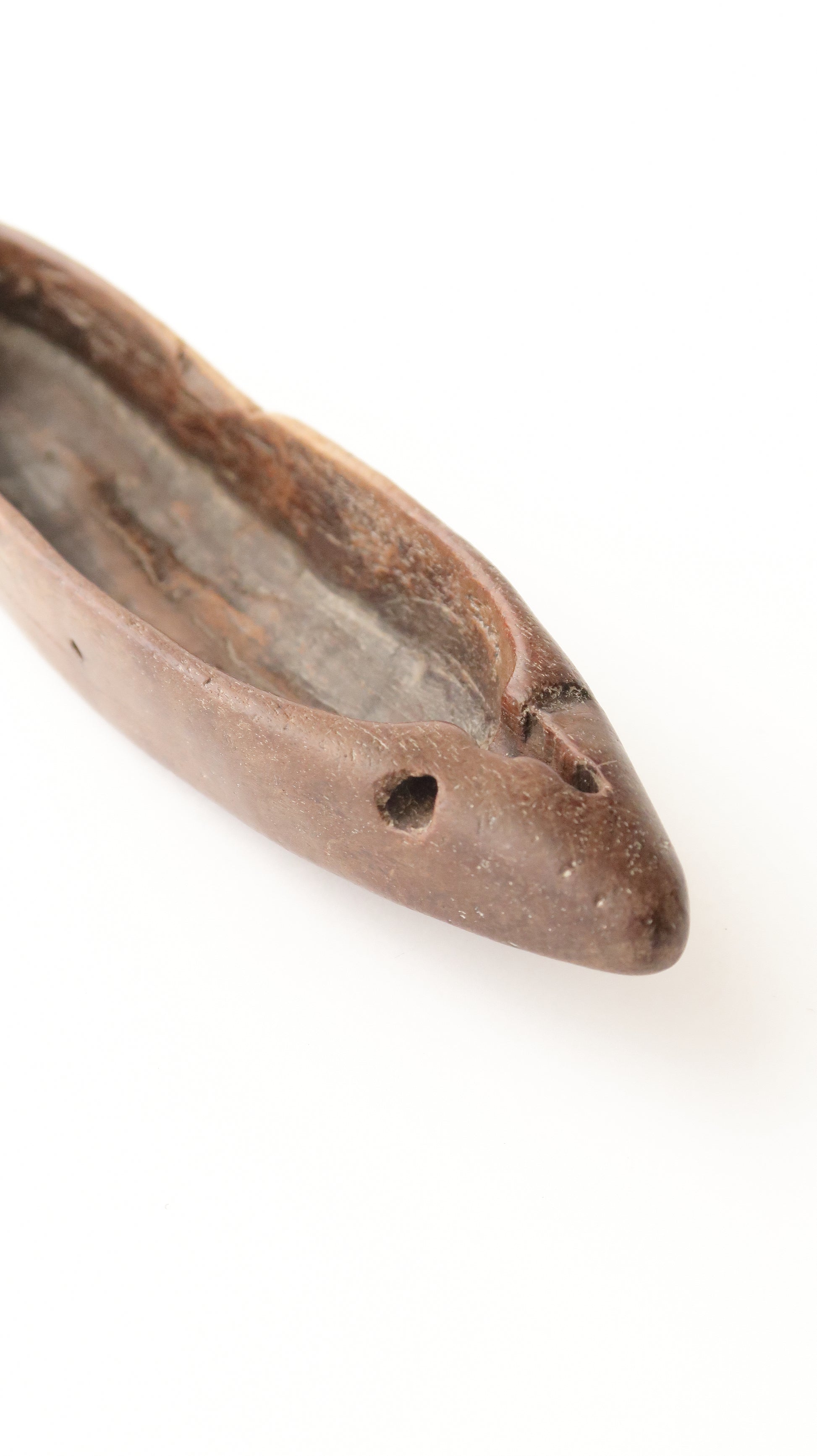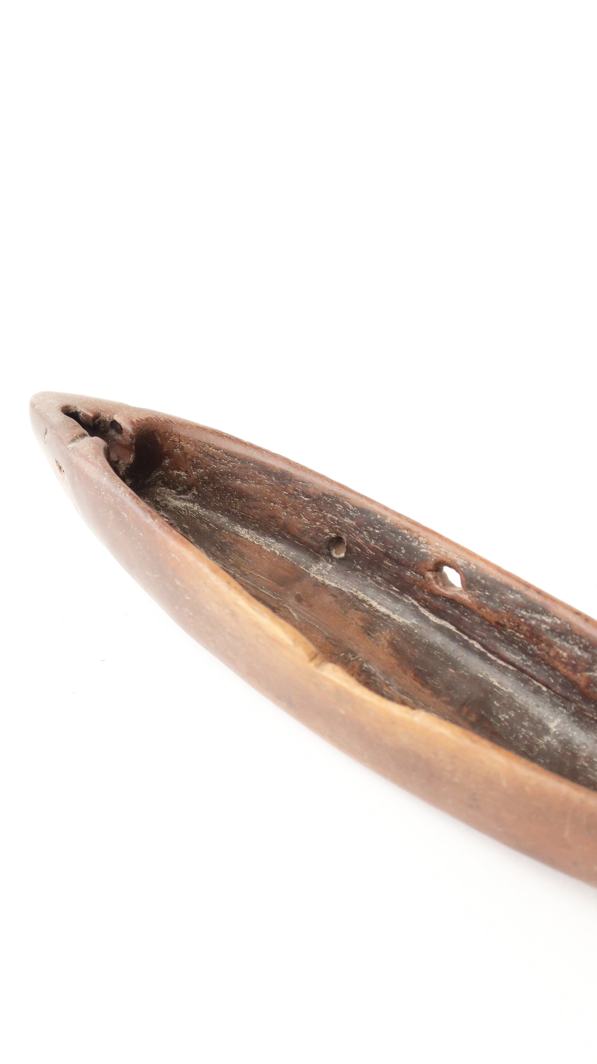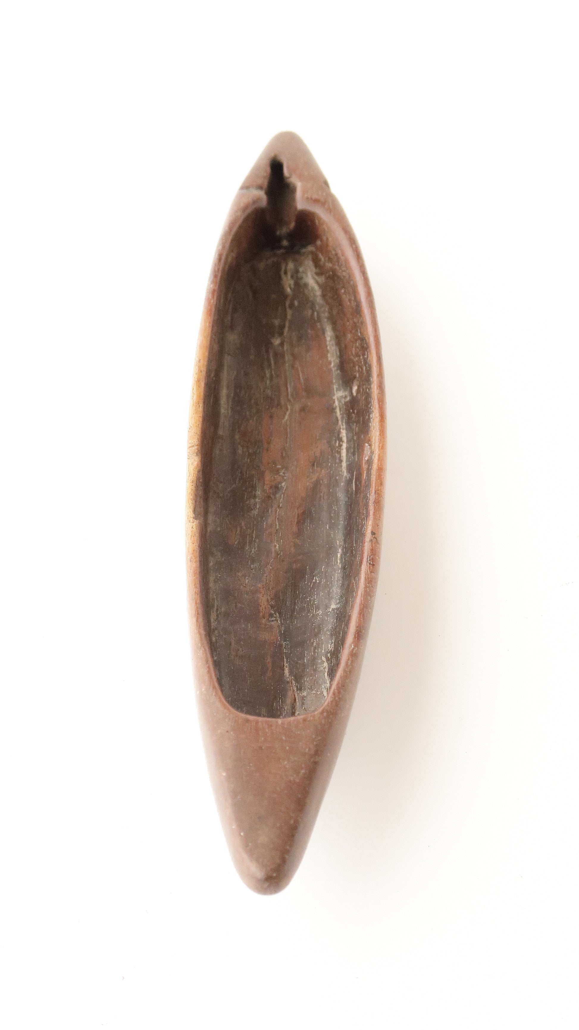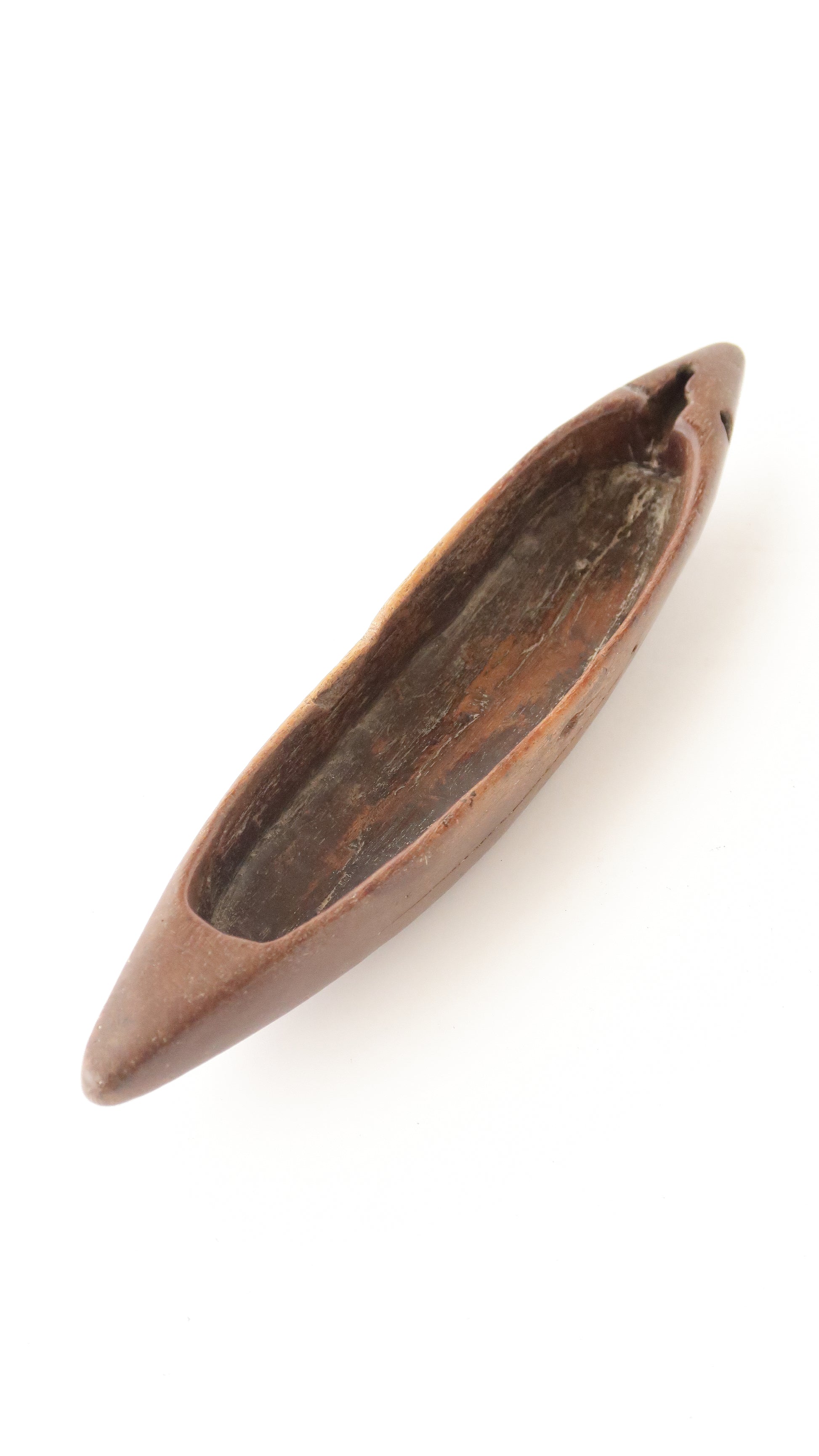 ここまで素朴なタイプは珍しく、手彫りの風合いと使い込まれた木の質感が魅力的です。