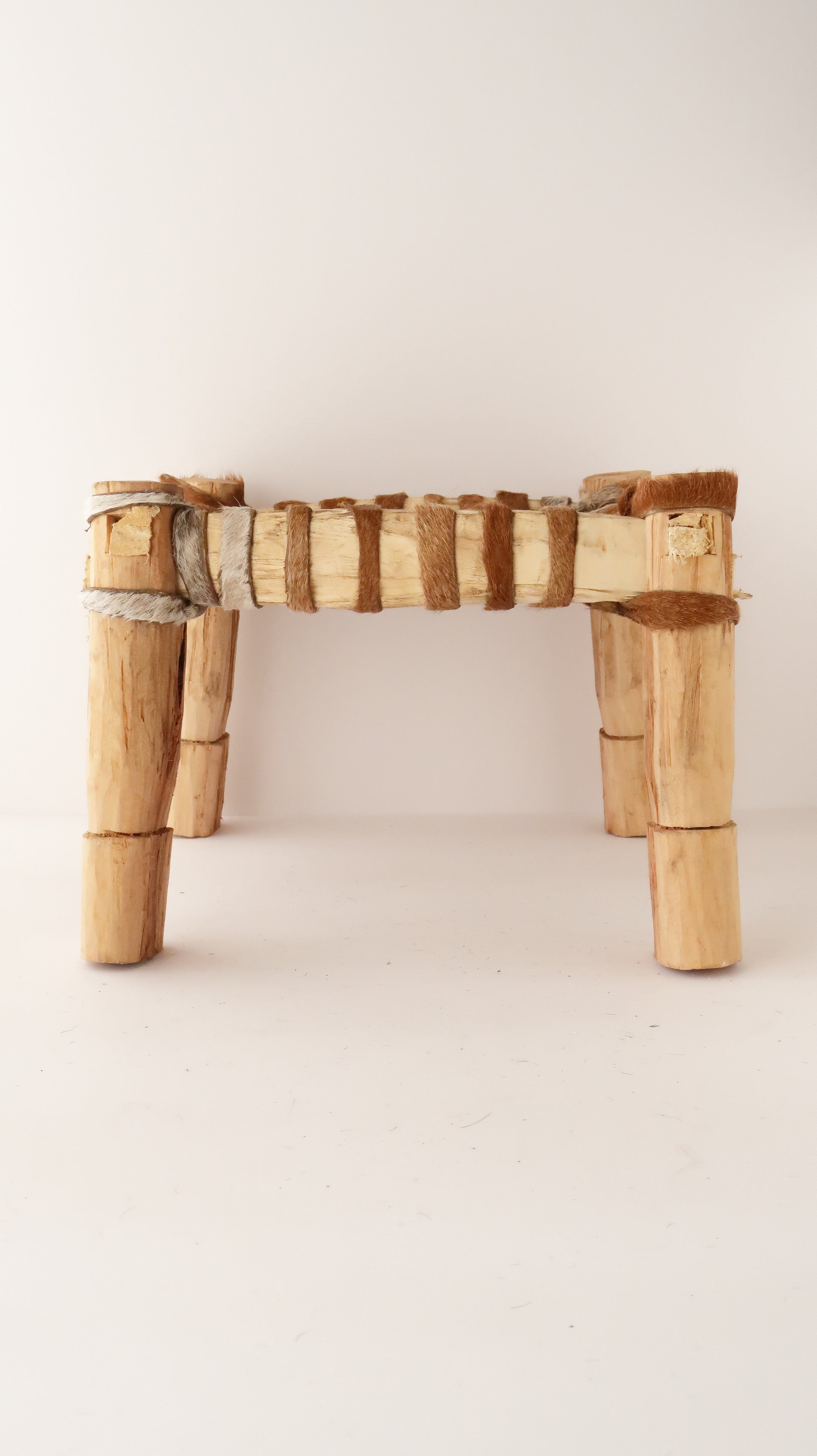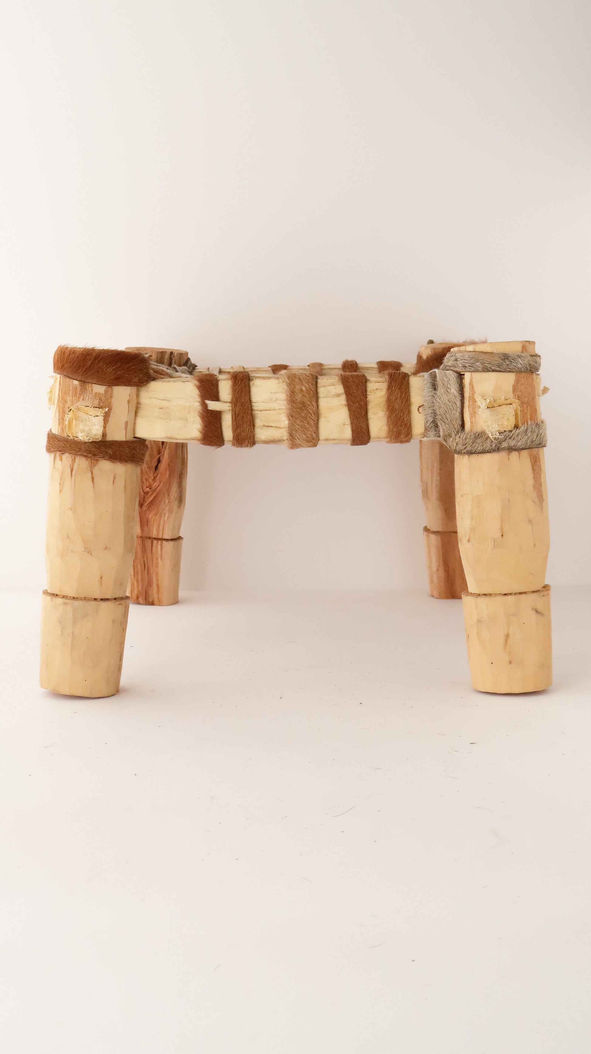 轆轤(ろくろ)ではなく、鉈(なた)で成形されたスツールの脚部分は、なんとも素朴な作りで良い雰囲気です。首都では見られることがない、北部ならではのスツールです。