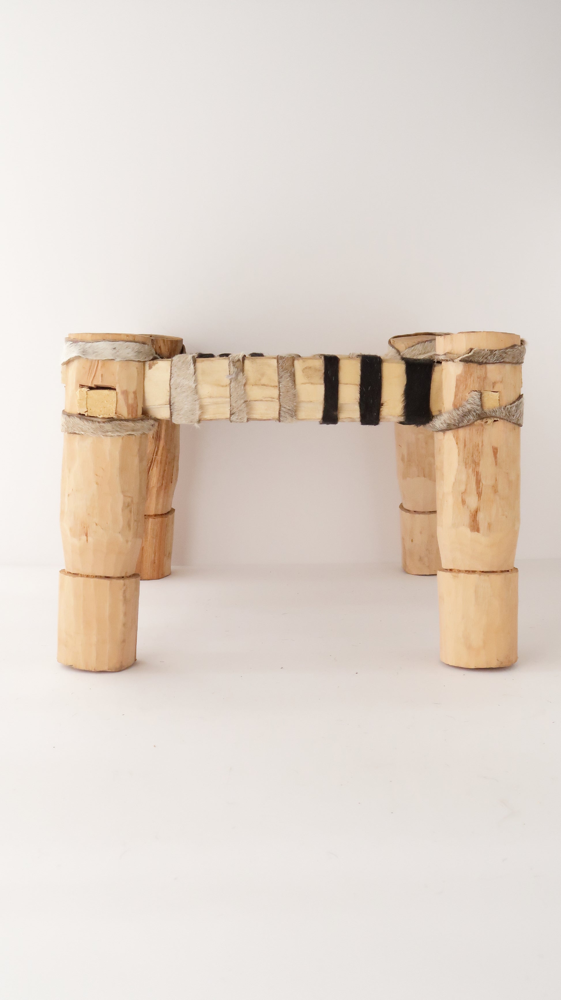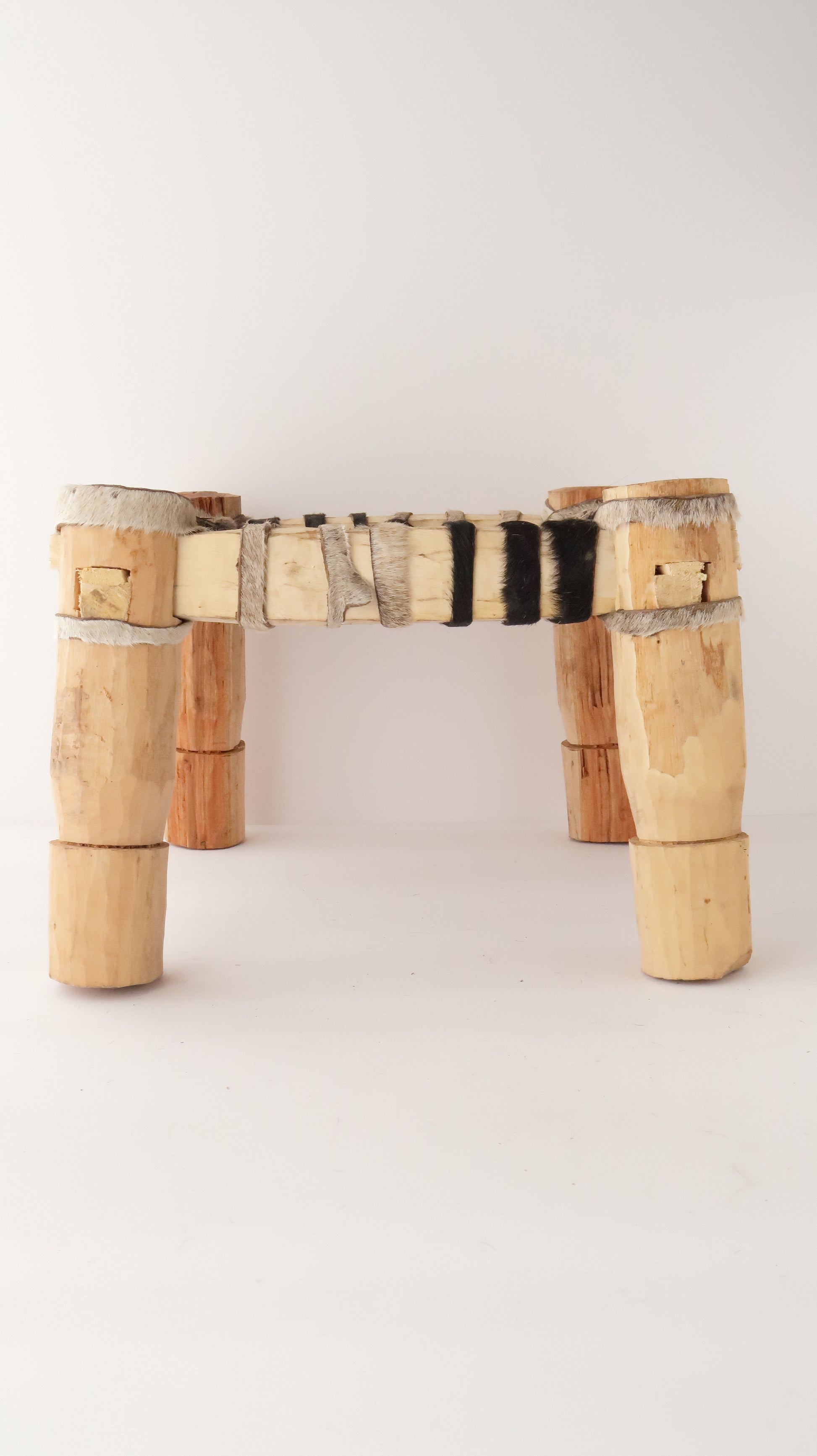 轆轤(ろくろ)ではなく、鉈(なた)で成形されたスツールの脚部分は、なんとも素朴な作りで良い雰囲気です。首都では見られることがない、北部ならではのスツールです。