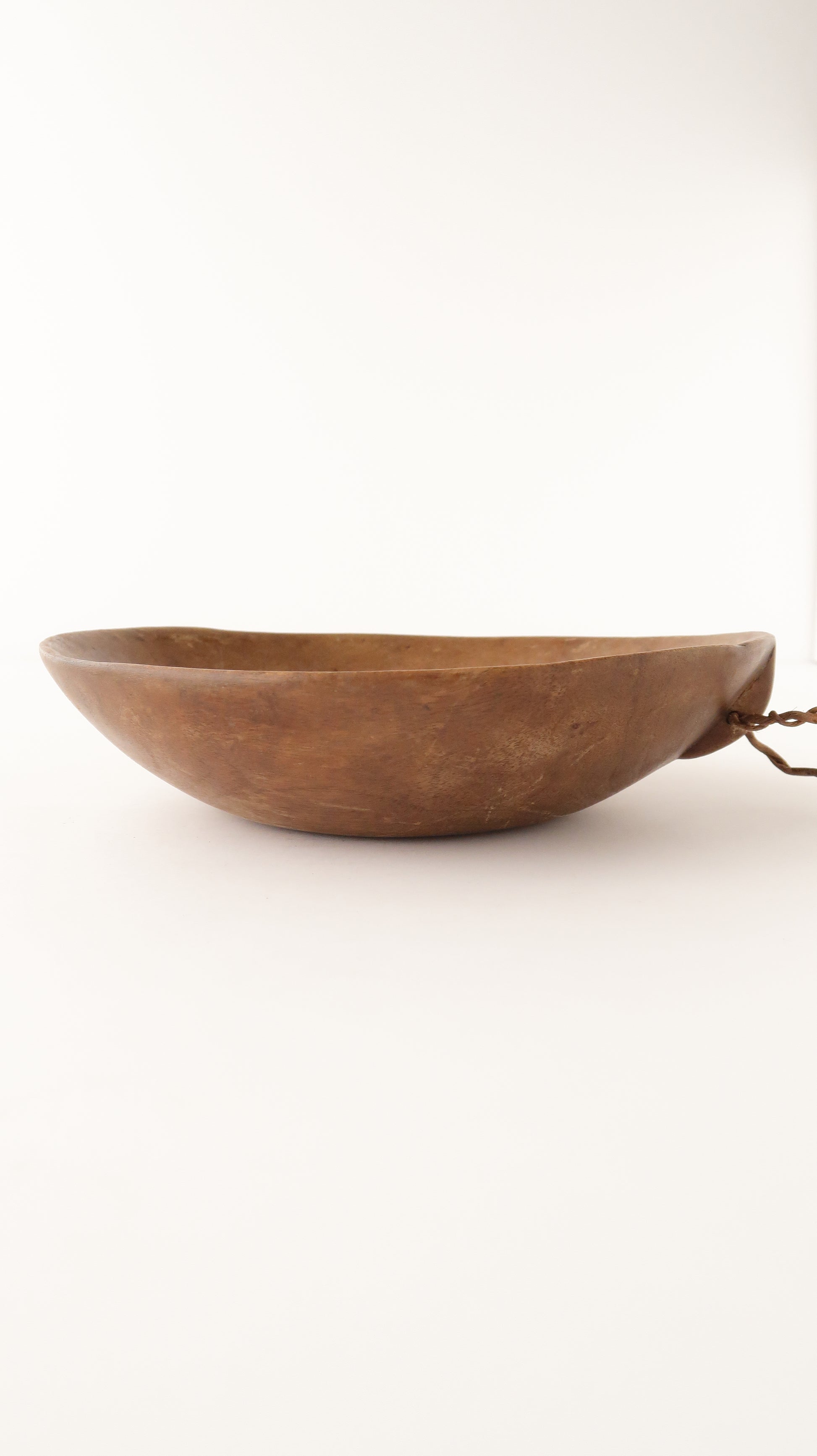 こちらは他のボウルに比べると明るい茶色で、模様も全くなく、この一点だけ少し違う雰囲気を持つ商品です。取手に紐も通せるので、壁に飾ることもできます。シンプルながらとても綺麗に作られているかっこいい一点です。