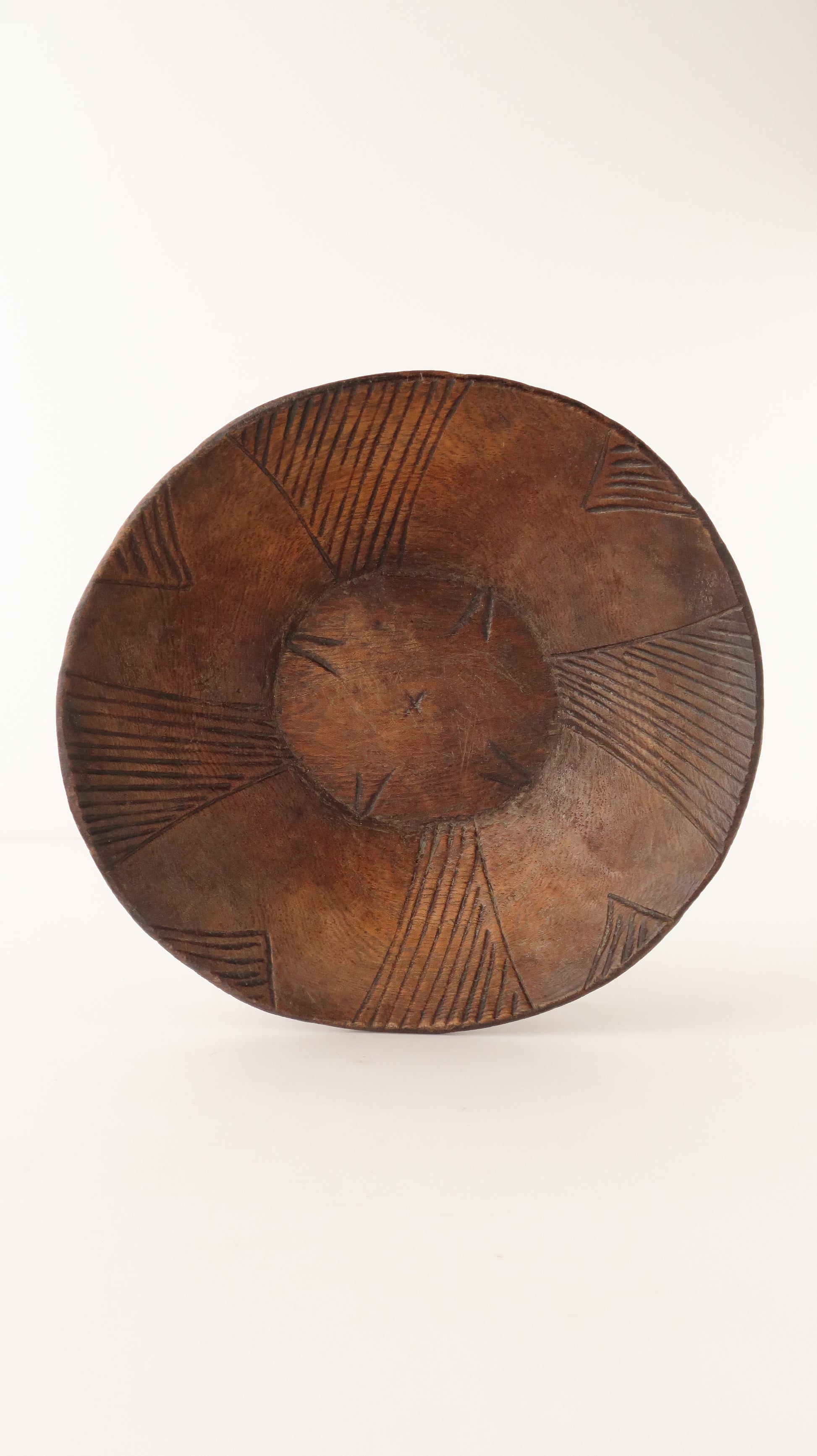 こちらのボウルは、手彫りならではな少し歪な円形が可愛らしいです。内側には全体にしっかりと模様が入り、側面は底のみ模様が入っています。