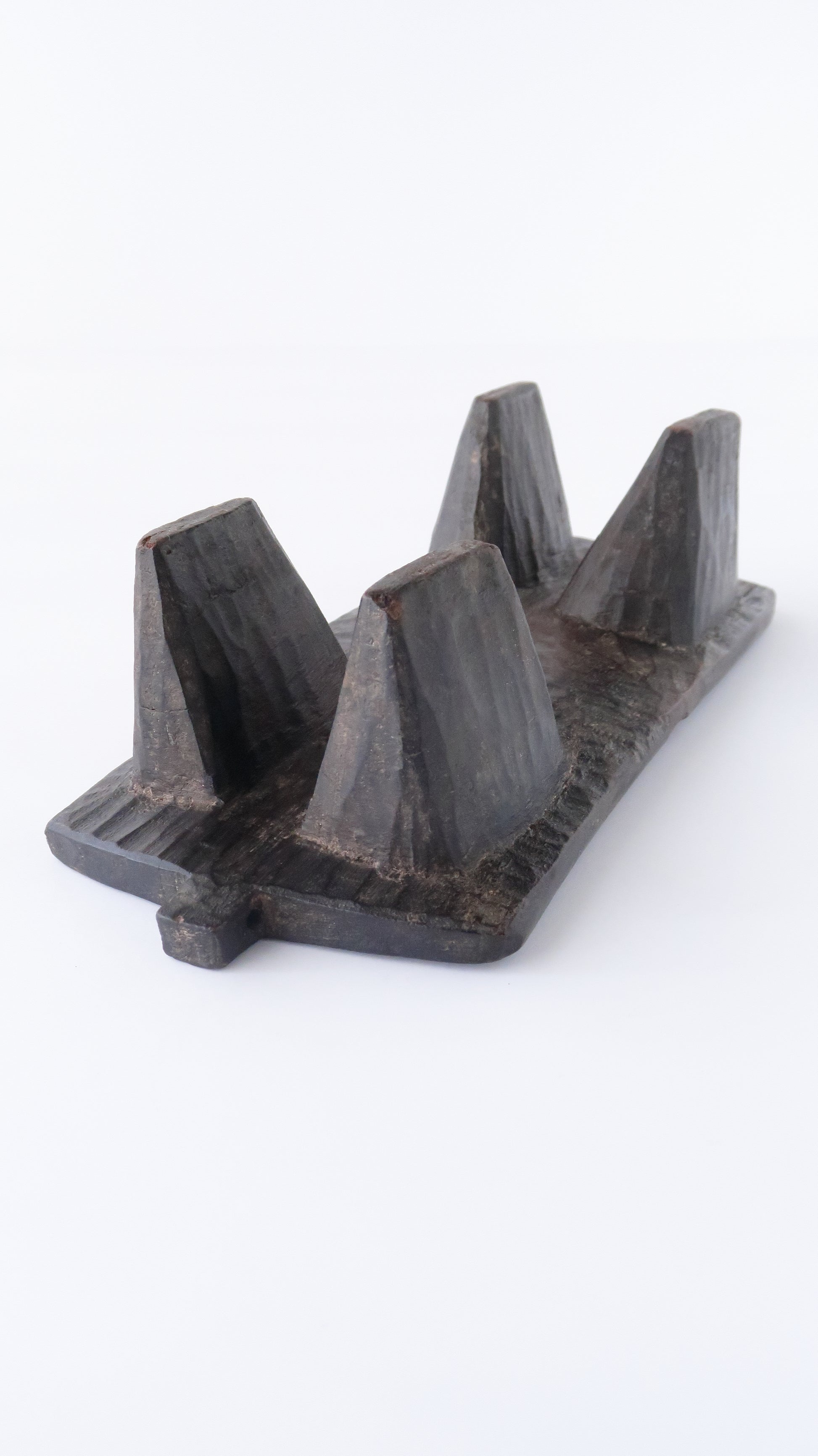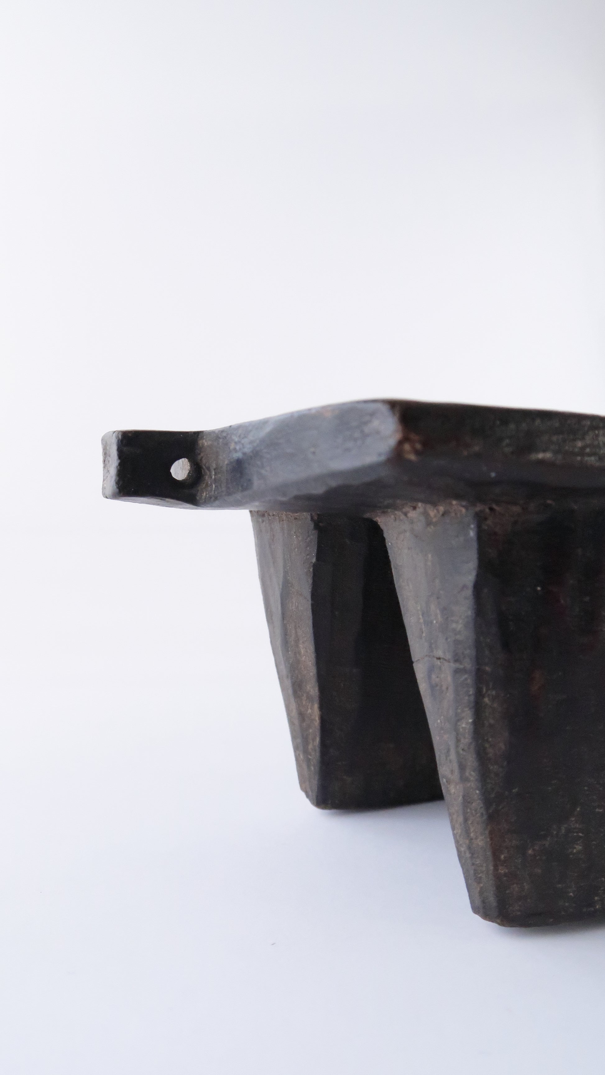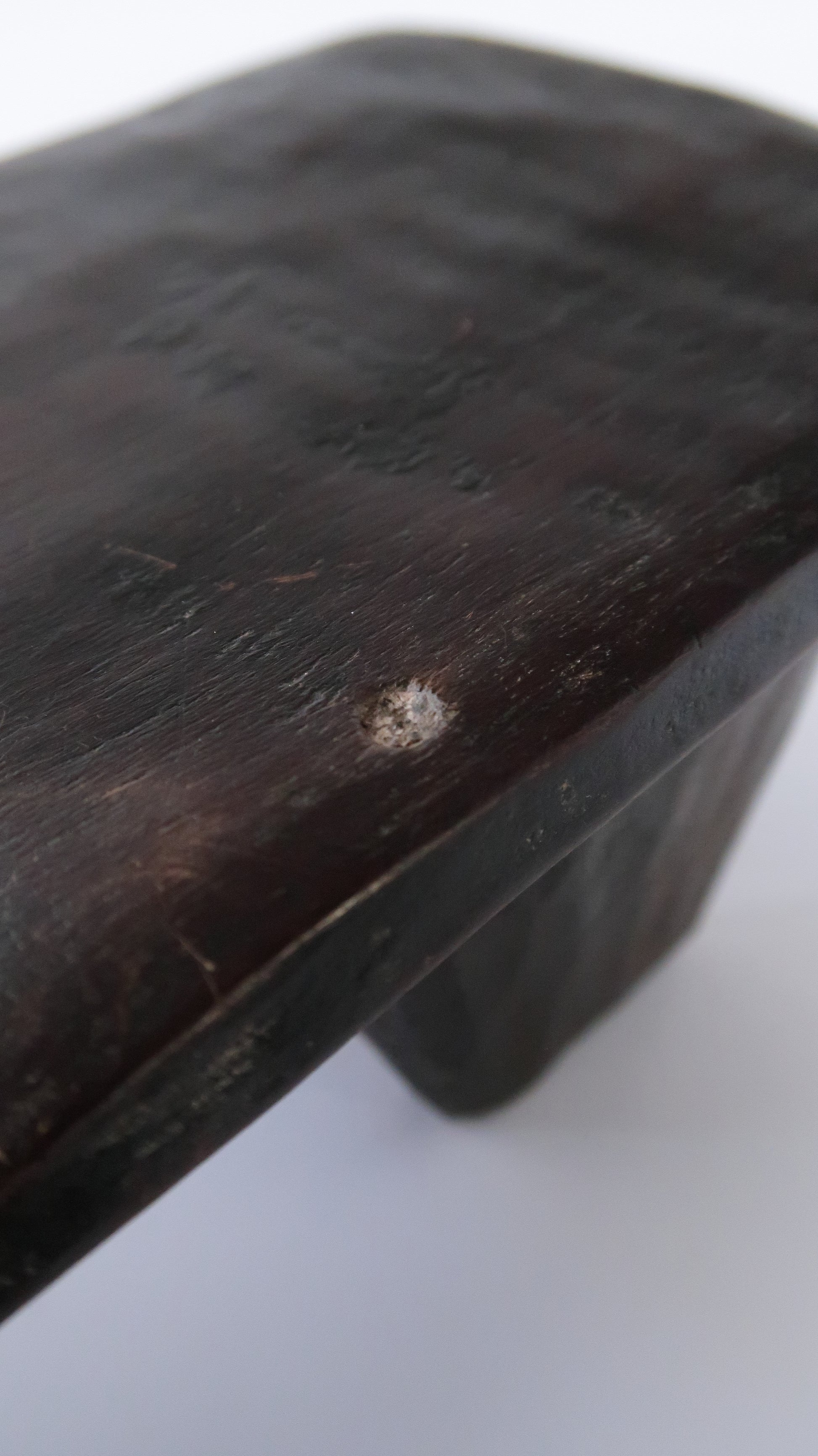 こちらもかなり雰囲気のあるかっこいい一点です。座面の端に小さな出っ張りがあり、穴も開いているので紐を通すこともできます。手彫りの雰囲気もしっかりと出ている魅力的な一点です。