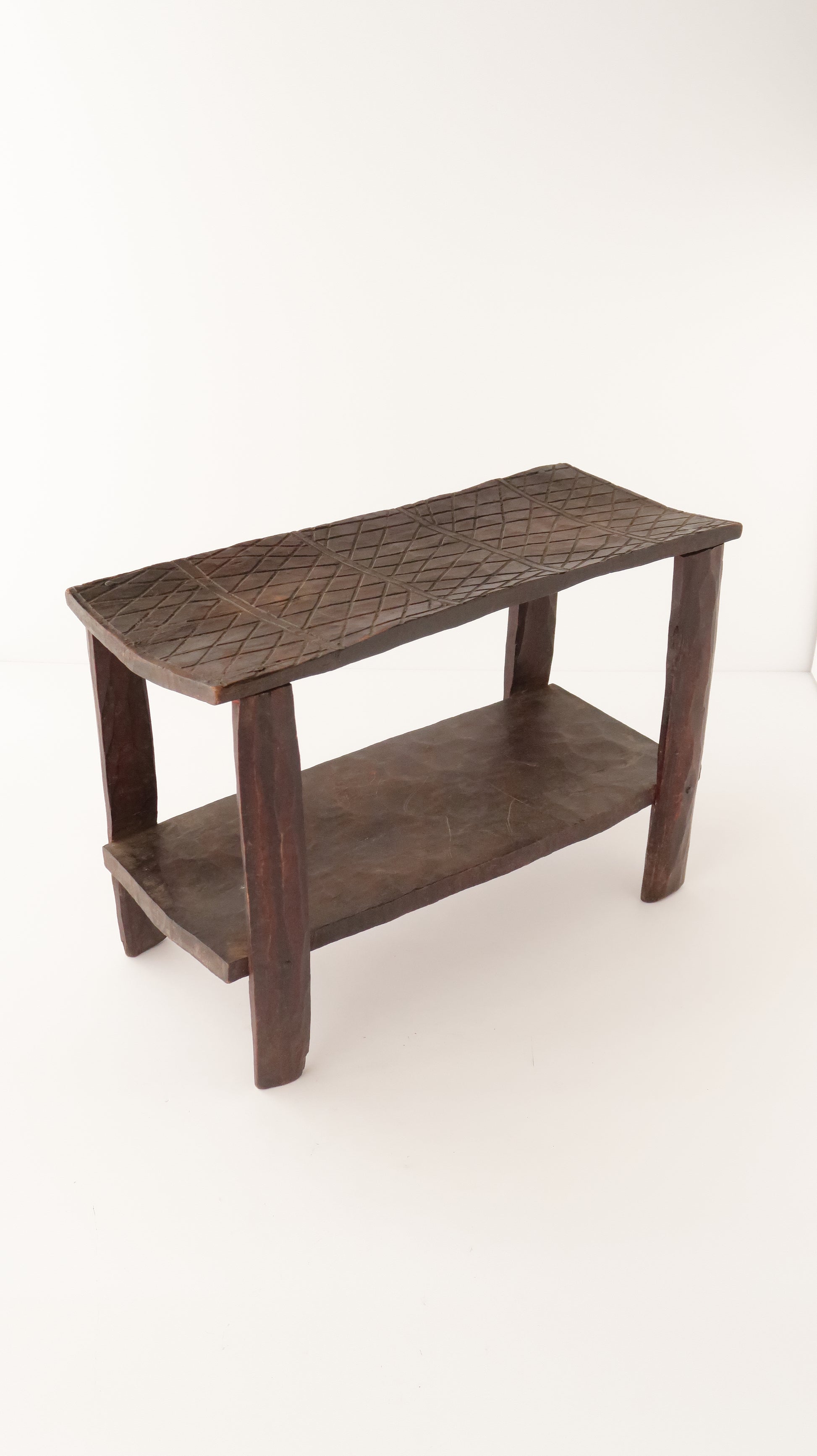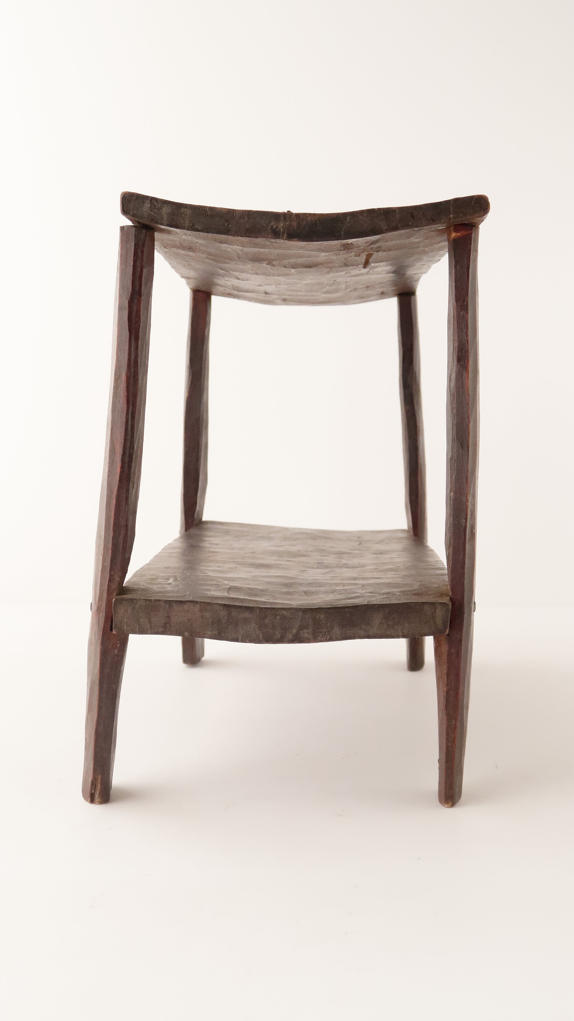 なんとも可愛らしい小棚です。とても素朴な作りですが、小物などを飾るのにとても雰囲気が出て良いアイテムです。少しガタつきはありますが、気になられる場合は足部分に紙を挟んでいただければしっかりと安定します。
