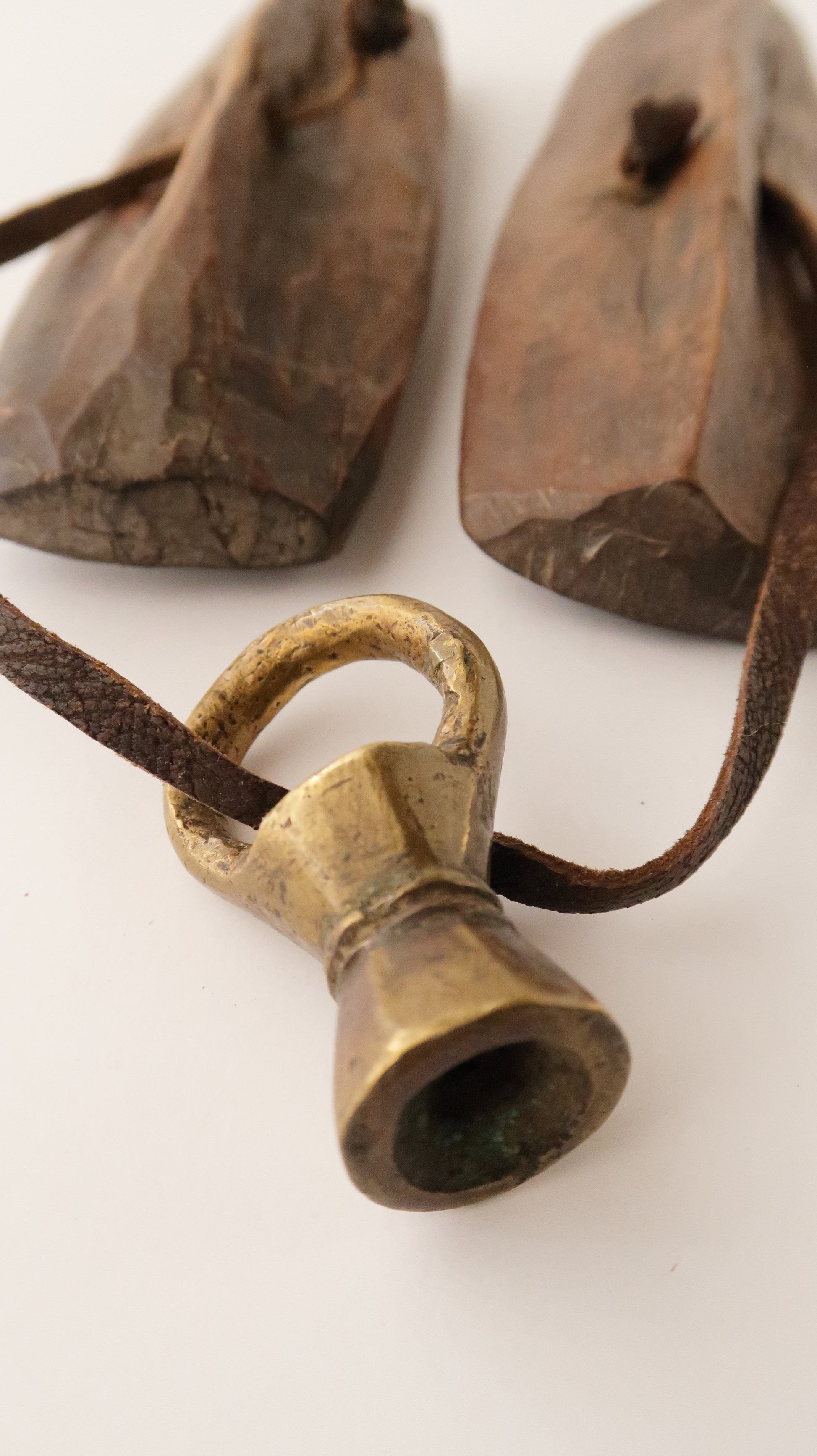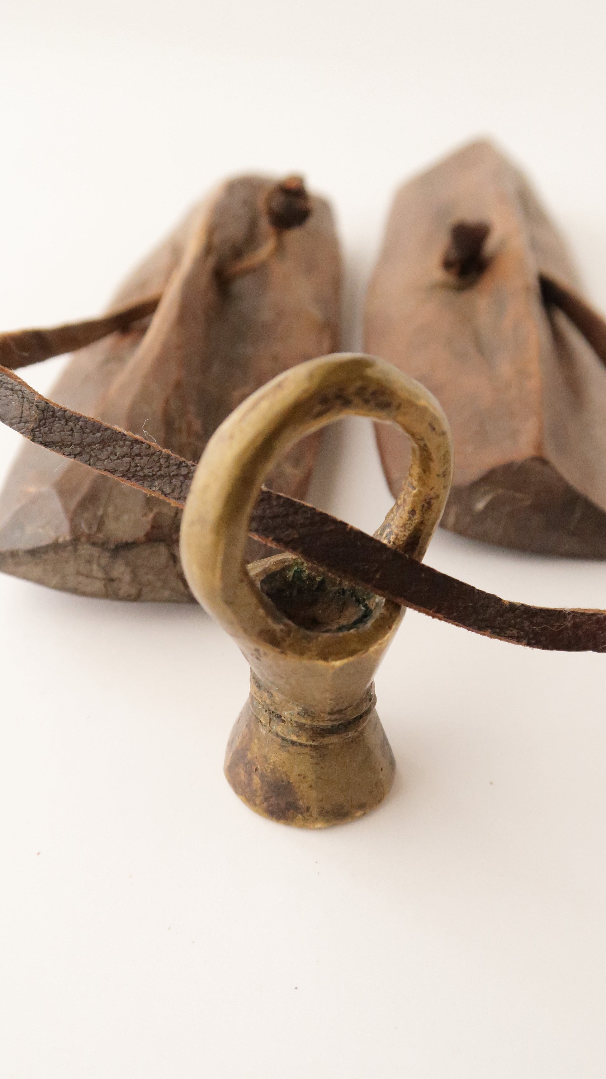 この楽器は手拍子のように使われてきたものです。木は革紐で繋げられています。奏でられる音はまさに、火の用心の時に使われる拍子木のような音がします。