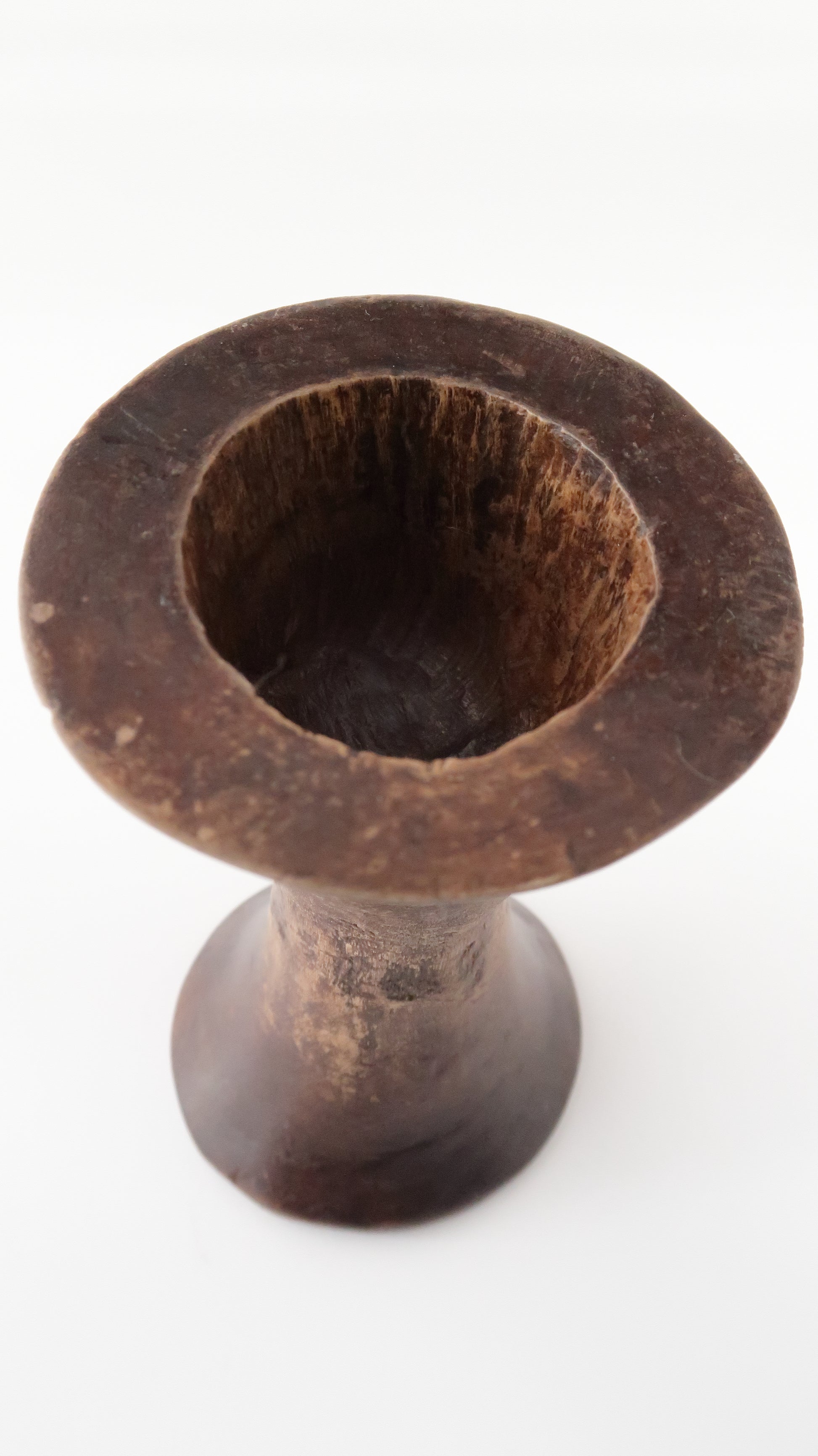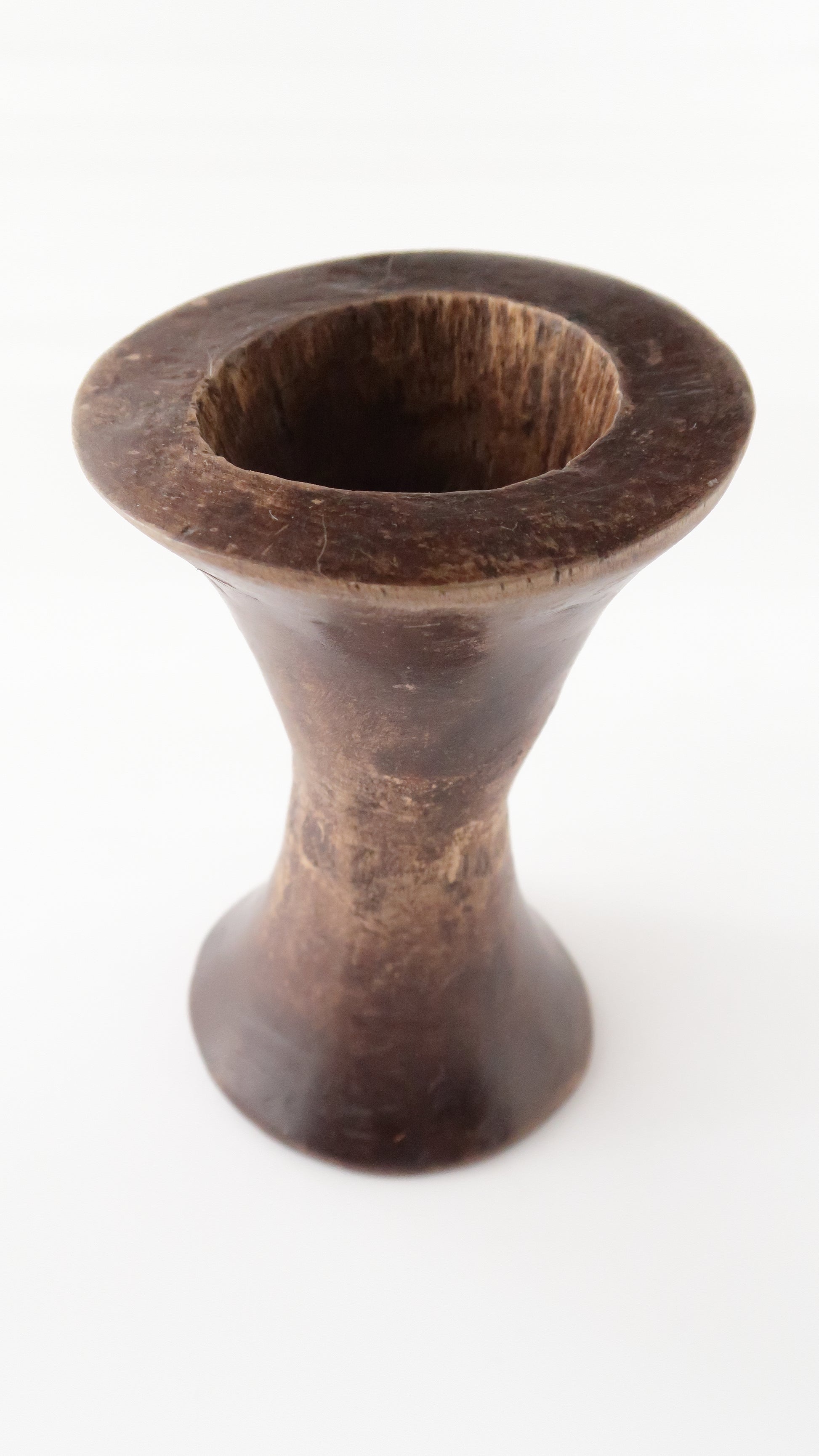 こちらの商品は少しガタつきがあります。くびれ部分は実際に使われてきたため、色が薄くなってきています。とても綺麗な形をした薬味潰しです。